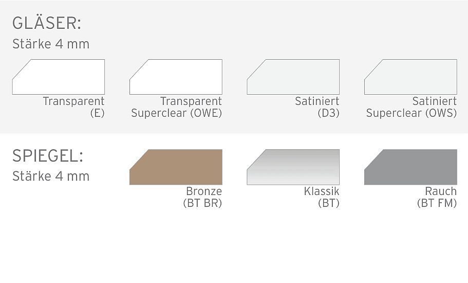 Unsere Alu-Glasrahmentüren sind in drei verschiedenen Rahmen erhältlich