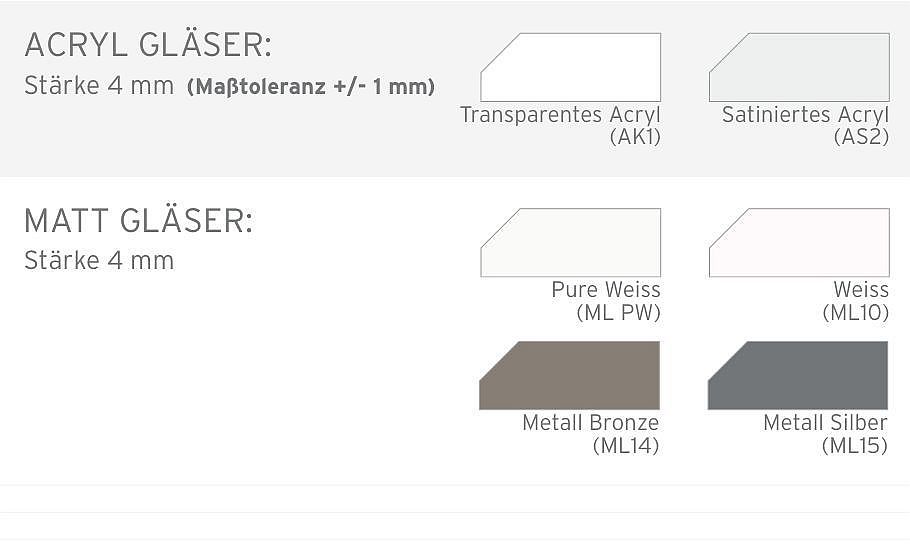 Der Werkstoff Glas findet im Möbelbau immer mehr Verwendung. Vor allem im Küchenbereich werden dabei auch Glasrahmentüren mit anderen Fronten kombiniert. Die große Auswahl an Farben und Mustern lässt hier keine Wünsche offen.